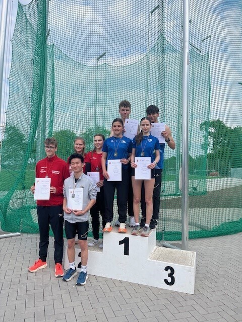 Die 4 mal 400-Meter-Mixed-Staffel in der Besetzung Noah Duda, Alena Michels, Vincent Hartmann und Nele Wagner freute sich nach 3:58 Minuten über den souveränen Sieg in der Altersklasse U20. Alle vier gehören in diesem Jahr noch der U18 an. Einziger Wermutstropfen: die erhoffte Qualifikation für die Teilnahme an den Deutschen Meisterschaften verpasste das Quartett um nur 1 Sekunde. Im nächsten Jahr gibt es die nächste Chance!