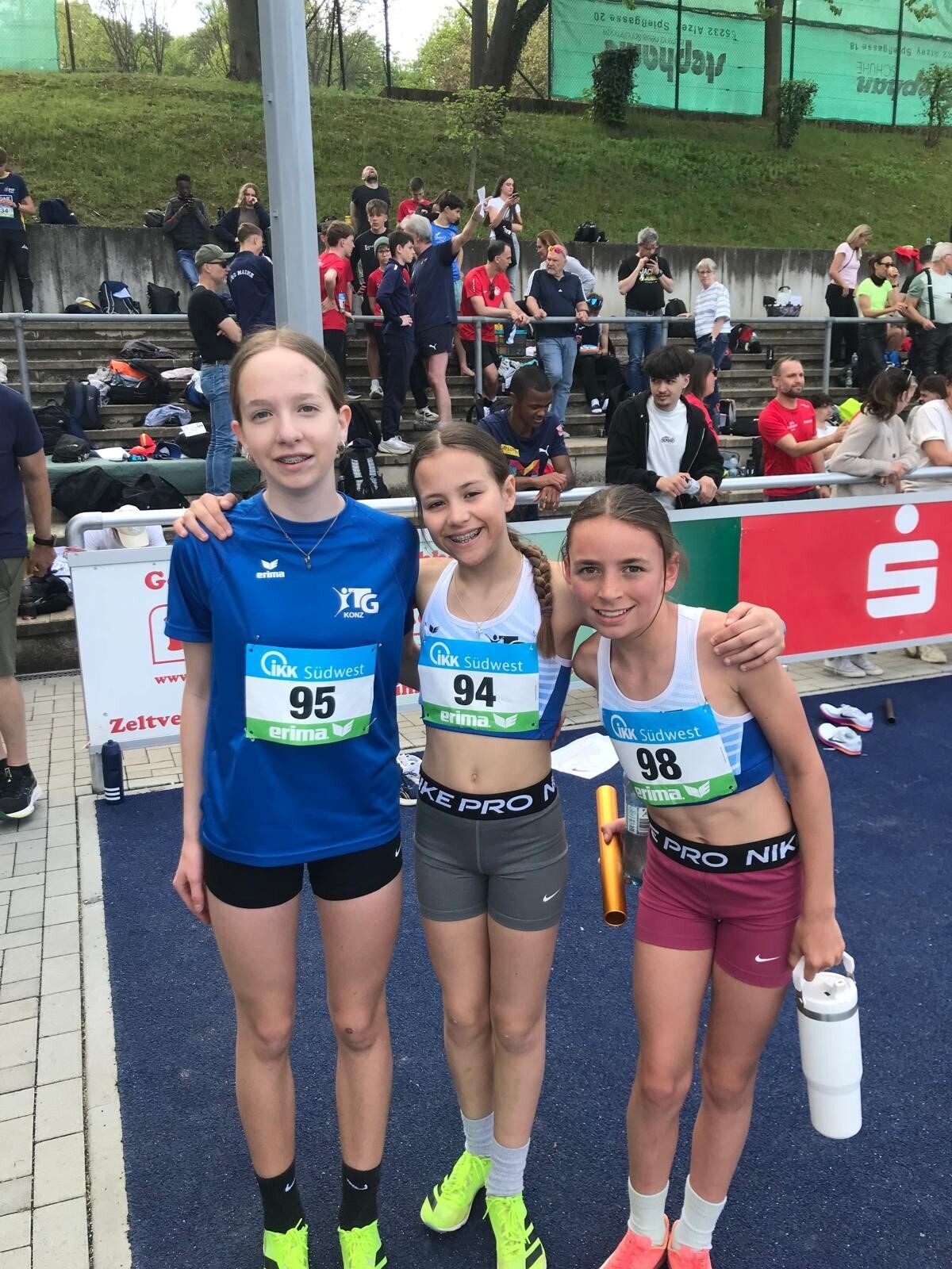 Die Mädchen in der Altersklasse U14 stellten sich über 3 mal 800-Meter der rheinland-pfälzischen Konkurrenz. Traditionell gibt es in den jüngeren Altersklassen meist die größten Teilnehmerfelder und so freuten sich nach 8:39 Minuten Johanna Fröhlich, Sophie Hach und Susie Vandenbussche über einen schönen 5. Platz unter 10 Staffeln.
