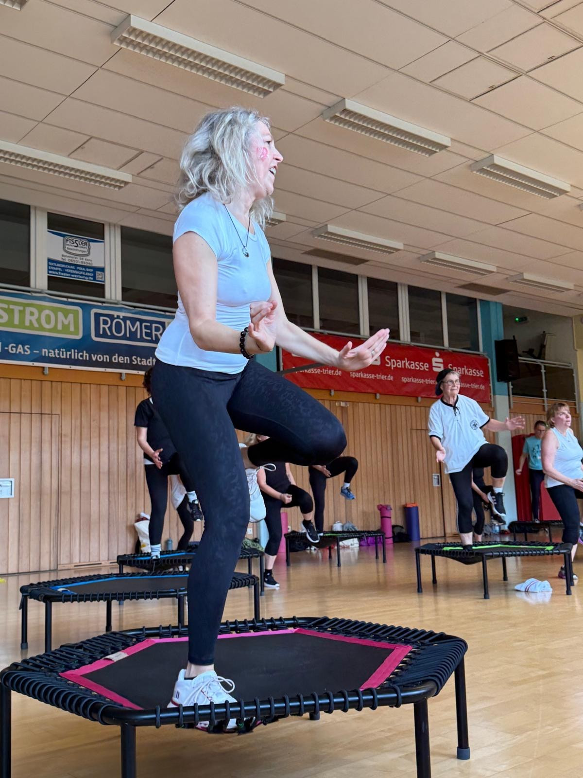 Wie immer hat das Team Fitness ehrenamtlich einen ganzen Nachmittag auf die Beine gestellt – mit ganz viel Engagement, Herzblut und Schweiß. Auf dem Programm standen Step Aerobic, Krafttraining, Zumba, Jumping, Boxen und zum Abschluss ein wohltuendes Stretching. Es wurde geschwitzt, gelacht, durchgehalten und gemeinsam gefeiert.Natürlich durfte nach so viel Bewegung auch das gemütliche Beisammensein nicht fehlen: Ein kleines Kaltgetränk, ein gesunder Snack und viele fröhliche Gespräche rundeten den Tag perfekt ab.Der gesamte Erlös des Marathons ging an das Wildtierzentrum Wildtierhilfe Saarburg – eine Herzensangelegenheit, die uns umso mehr motiviert hat.Ein riesiges Kompliment an alle Teilnehmerinnen (und ich brauche nicht zu gendern 😉), ihr wart mega!Und ein großes Herz an die Ladies, die seit 6. Jahren in 2,5 Stunden alles geben: Anja, Karin, Heike, Manu und Myriam. Und ein riesengroßes Dankeschön an unsere Marlies, die in diesem Jahr mir den Rücken frei gehalten und die leckeren Snacks gezaubert hat. Beim nächsten Mal stehst Du aber wieder vorne mit dabei, liebe Marlies 😉