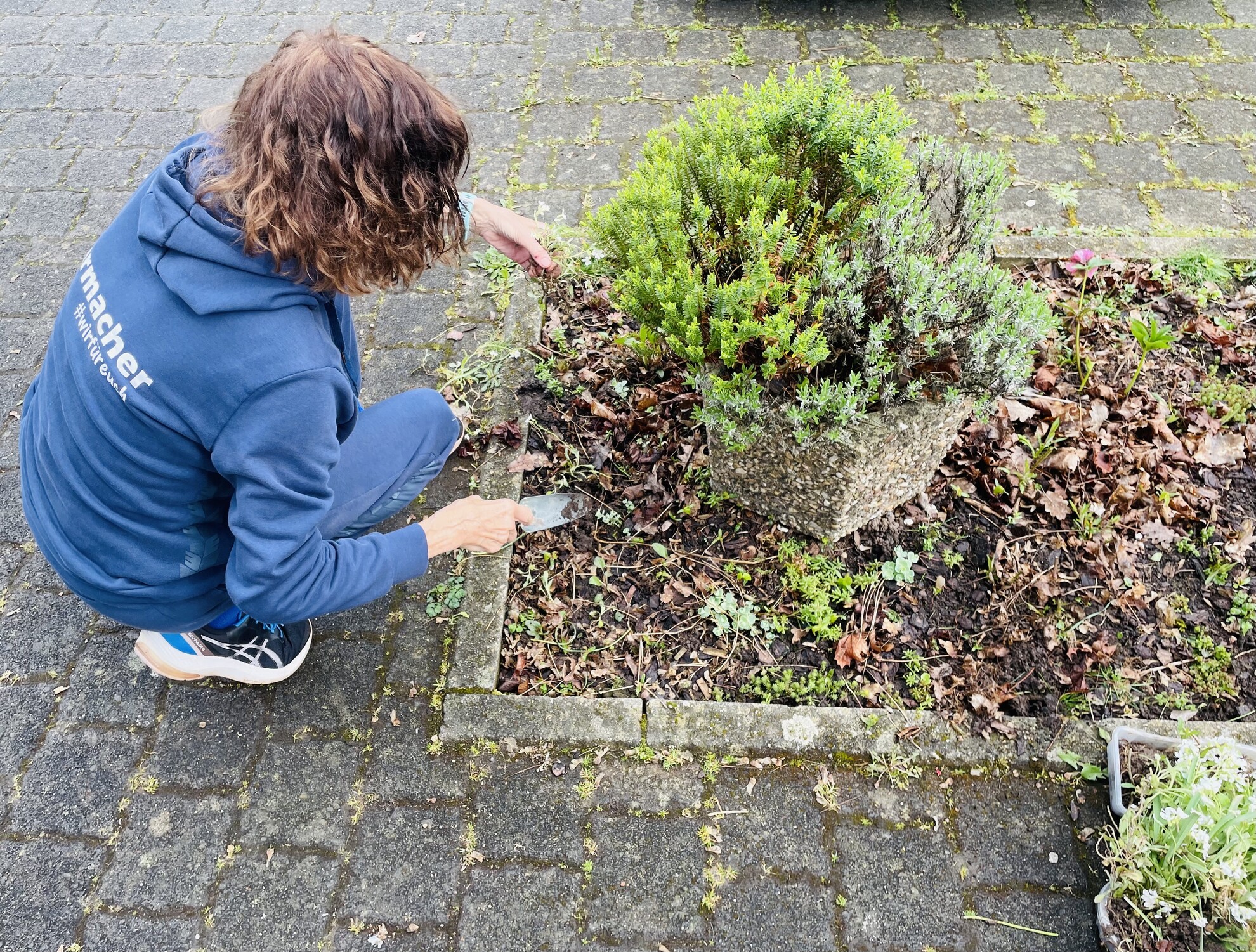 Zwischendurch findet man unsere liebe Karin vor oder nach ihren Stunden vor dem TG Sportpark grabend in der Erde, um es auch vor unserem Gebäude ein wenig ansehnlicher zu machen. Und das einfach so und ganz still.
